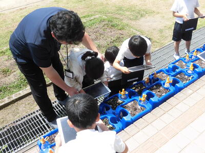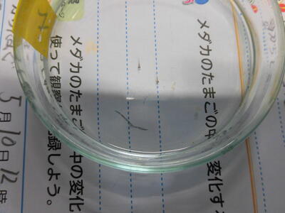 5年生は、丸田前PTA会長さんからいただいたメダカの卵の観察を続けています。