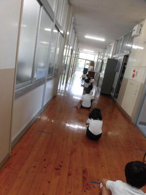 「回れ、右」で、くるくる回る子もいて、ほのぼのとした練習風景です。