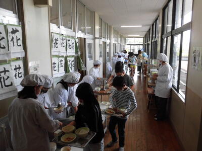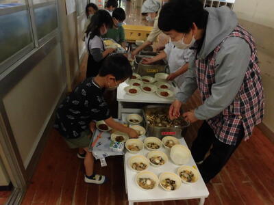 今日は、2年生の配膳などに応援ボランティアに来ていただいたので、2年生の準備もスムーズでした。