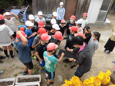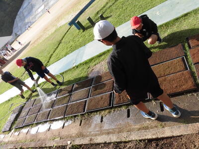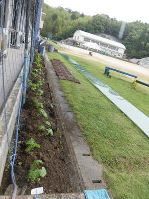 運動会の練習には支障がありますが、昨日5年生がまいたイネの種には、恵みの雨です。