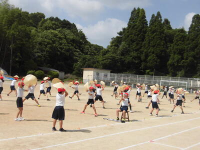 中学年は「は~やっしょう、まかしょ!」のかけ声も軽やかに踊ります。