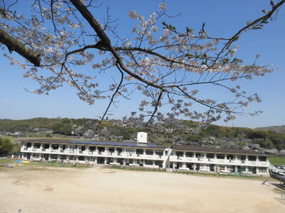 桜の下から校舎を見下ろして、思い出を一つ作っていただきました。