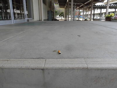 ところで、体育館の入口に、タバコの吸い殻が落ちていました。