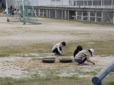 まだ水たまりはありますが、子供たちは、それぞれに話し合って遊びを決めて運動場へ!