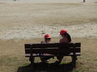 いつもと違う場所で、いつもと違う遊びをしている子たちがいます。