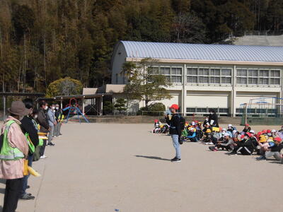 親睦陸上大会の練習でお世話になった松尾先生が、子供たちの卒業祝いに駆けつけてくださいました。