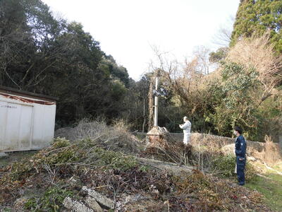 昨日に引き続き。松尾さんご一家も法面の樹木伐採や草刈りをしてくださいました。