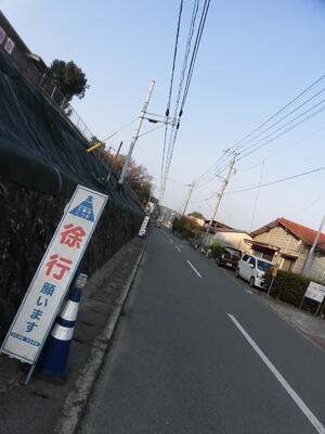 学校の前の通りは、昼間は通行止めという表示がありました。