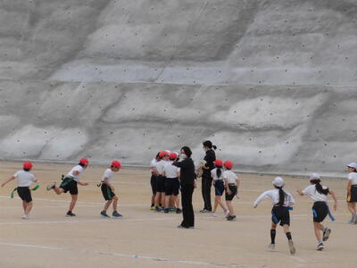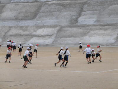 3年生が、かわいい尻尾をヒラヒラさせながらタグラグビーをしていました。