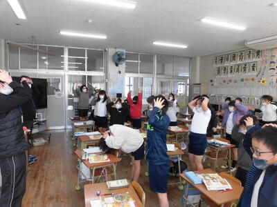 西川先生が、手話で「大好き!平井小!」を教えてくださって、みんなでやりました。