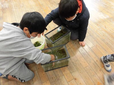 「今日は、給食はありませんよ」と、声をかけようとしたら。。。何と!