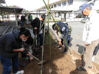 地区協議会とPTA本部役員の皆様にご協力いただいた桜の植樹を、今朝ついに実行できました。