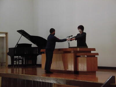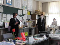 まず、転出される先生方には、職員室で、お別れのあいさつをしていただきました。