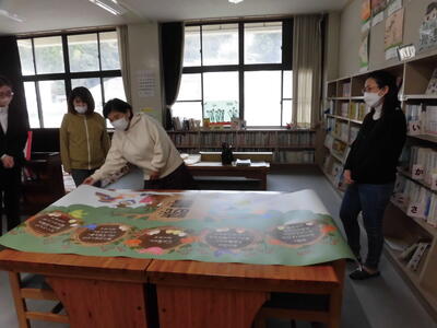 「てぶくろの会」の会員の皆さんが、「平井小の図書室のために」と、掲示物を寄付してくださいました。