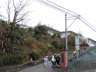 今日は、福田さんと、下見のためにガケの上の広場だったところを歩きました。