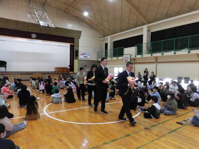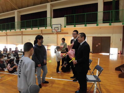 子供たちから花束をいただいたり、PTAから記念品をいただいたりと、ほんとうにありがとうございました。