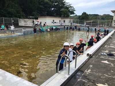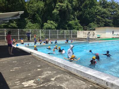 夏を感じさせる日差しのもと、子どもたちは、気持ちよく、きれいになったプールを楽しんでいました。