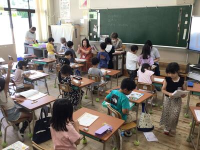 子どもたちは、丸付けボランティアの皆さんに丸を付けてもらいながら、たくさん褒めていただきました。