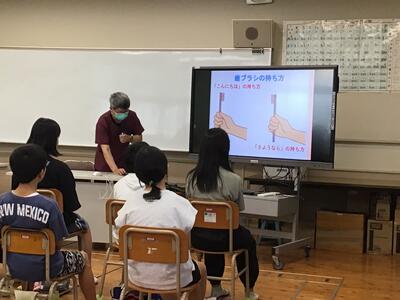 学校歯科医の山本先生と歯科衛生士の先生をお招きして、5・6年生は『高学年歯科指導』を受けました。