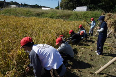 茅畑さんたちにお世話になってきた田んぼの稲を刈る日がやってきました!