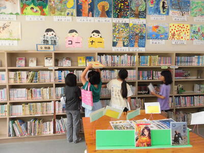 4年生は、図書室で本を借りていました。