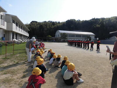 放水の実演や消防車の試乗、設備の説明など、子供たちは時間たっぷりに楽しみました。