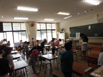 1年生が、授業を始めるときのあいさつの仕方について学んでいました。