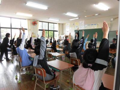 2年生は、養護教諭の杉野先生のお話をよく聞いて、静かに活動をしていました。
