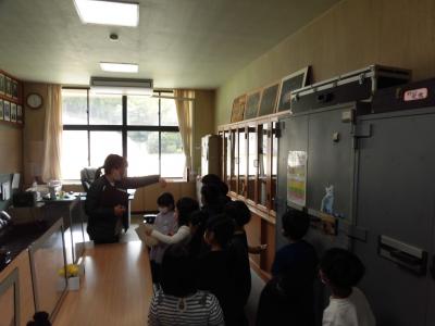 「今から100年以上も前の校長先生ですよ」と説明すると、「え~っ!ひゃくねん!」と、驚いていました。