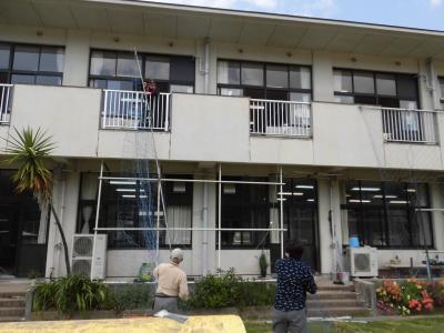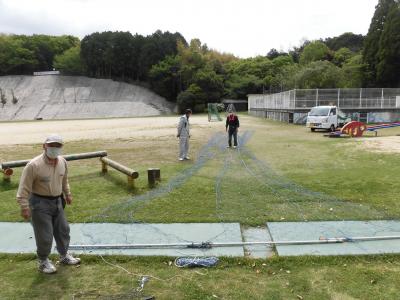 朝からご近所の松井さんと古嶋さんにおいでいただき、グリーンカーテンのネットを張っていただきました。