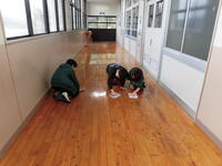 広い校舎、長い廊下を、少人数でキレイにしています。