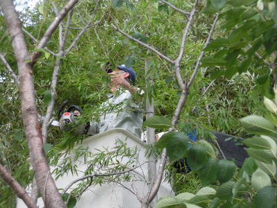 先日から取り組んでいただいている竹藪の整理ですが、倒す際の電線への影響が課題でした。