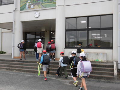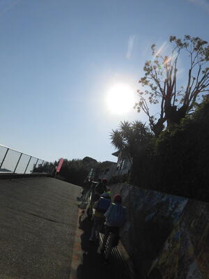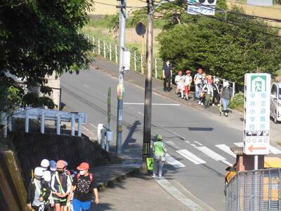 西坂から上がってくる子供たちは、まぶしそうにうつむきがちに歩いてきますが、あいさつはさわやかです。