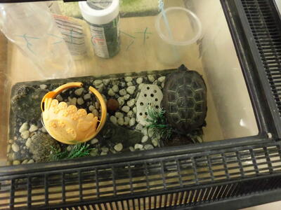 2年生にあげた亀に名前がついたと、担任の山本先生から聞きました。