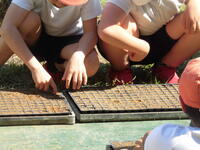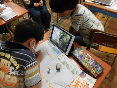 子供たちは交代で観察し、タブレットで記録を残していました。