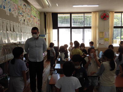 給食の準備で廊下をすれ違う1年生が、習いたての英語を使って「校長先生、See you next taime!」とあいさつしてくれます。