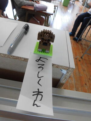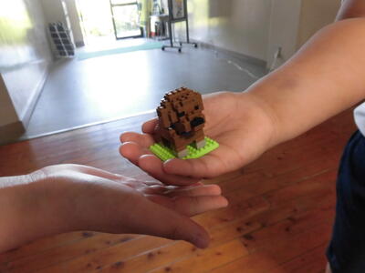 スマイル学級のお友達が、レゴでつくった犬の作品を見せに来てくれました。