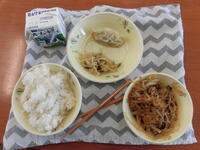 今日のメニューは、「マーボー春雨」「ぎょうざ」「ナムル」の中華定食でした。