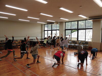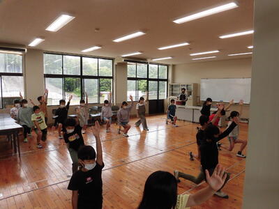 小雨が降って、中学年と低学年の運動会の練習は、運動場から体育館に変更です。