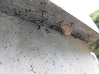 「プールの外側の段のところで、黒いカマキリが生まれています!」と4年生の虫博士くんが教えてくれました。