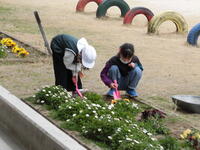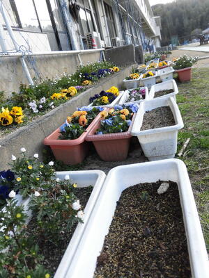 校庭の花を図書室前にも飾っていただきました。春ですね~。