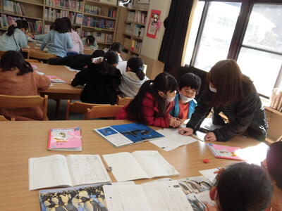 1年生は、図書室で、「どうぶつの赤ちゃん」について調べていました。