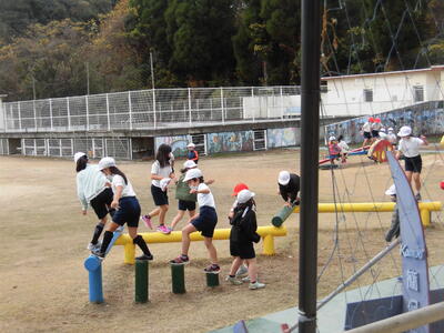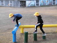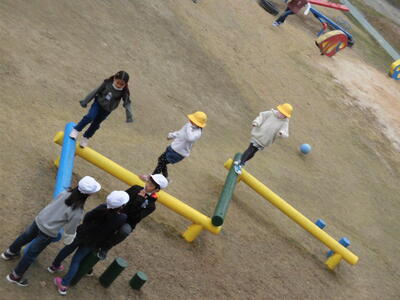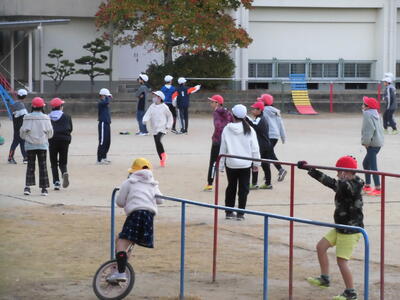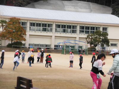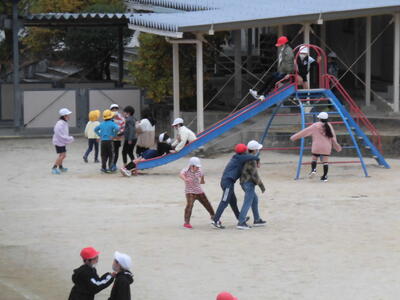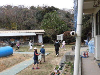 寒い朝ですが、子供たちは元気に外で遊んでいます。