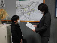 全校児童が書いた感謝のお手紙を、代表で2年生が手渡し、みんなで写真を撮りました。
