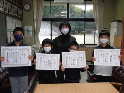 今朝の学校集会では、科学展や発明工夫展、読書感想文・画などの表彰をしました。