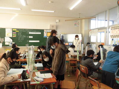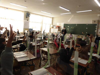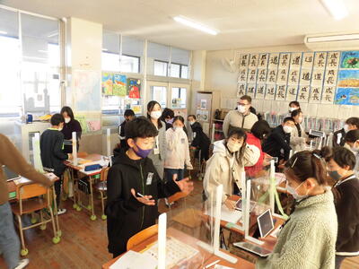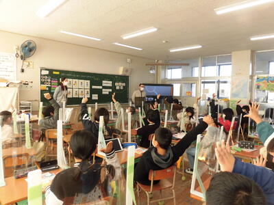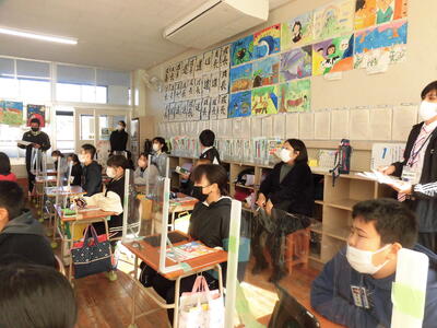 スライドを使った発表を、それぞれの教室で食い入るようにして聞いている下級生たちの姿がありました。