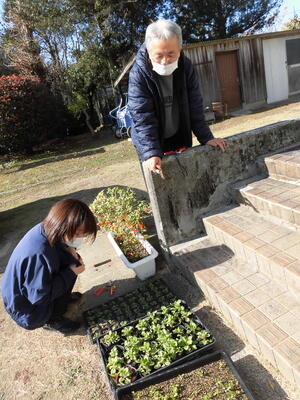 以前本校の職員だった、地域にお住まいの高尾先生が、花の苗を持ってきてくださいました。