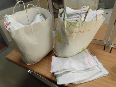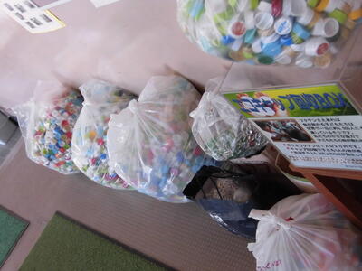 それにぞうきんも、リングプルやペットボトルキャップも、た~くさん持ってきていただきました。