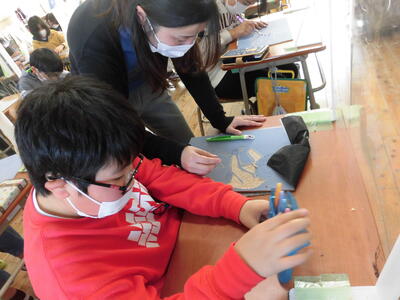 「たれ」がうまく切れなくて、ハサミを持ち出す子もいました。