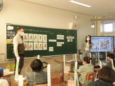 6年生は、専科の高山先生やALTのアラン先生、担任の先生たちの応援を受けながら発表会をしていました。